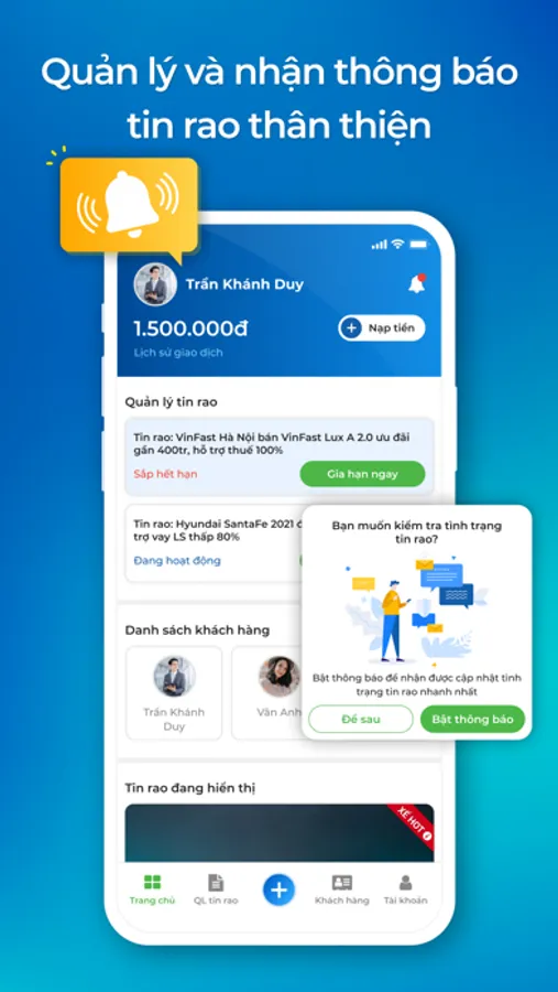 * Quản lý tin rao dễ dàng: Nâng cấp, gia hạn, thanh toán và chỉnh sửa tin rao tin rao nhanh chóng dễ dàng.