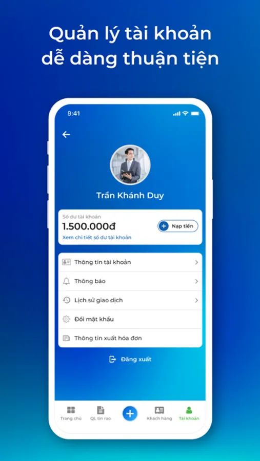 * Quản lý thông tin cá nhân thuận tiện: Cập nhật thông tin tài khoản nhanh chóng, kịp thời, giúp việc chi tiêu cho tin rao trở nên đơn giản, dễ dàng.