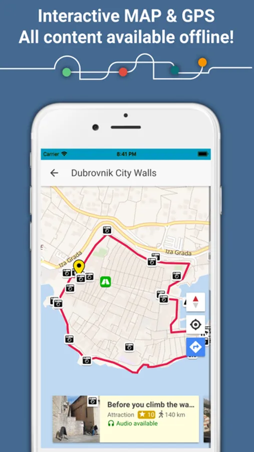 Once you download Dubrovnik guide, ALL CONTENT (audio stories, maps & images) will be stored on your device. NO INTERNET CONNECTION IS REQUIRED while you walk through the city.