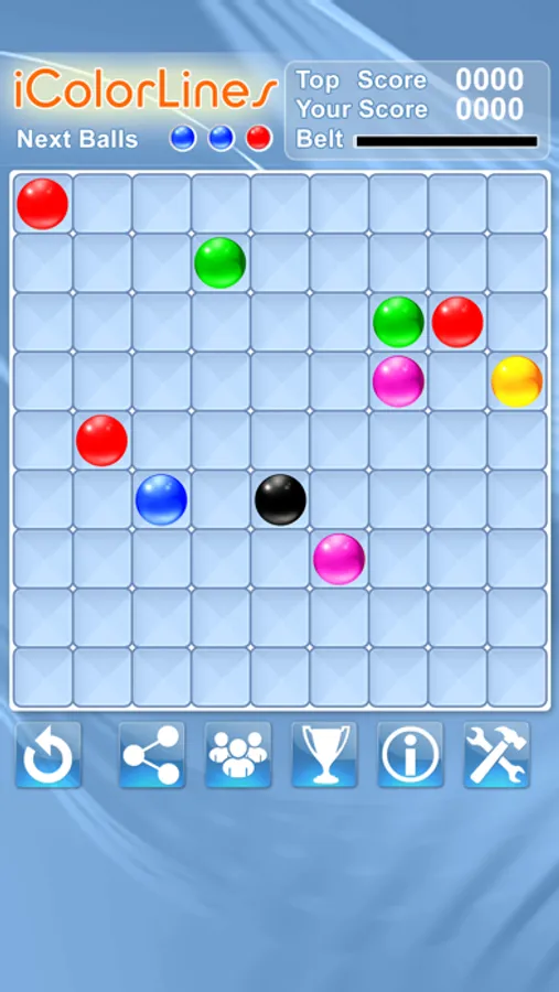 To remove balls, arrange at least five same color balls to lines (horizontal, vertical or diagonal).