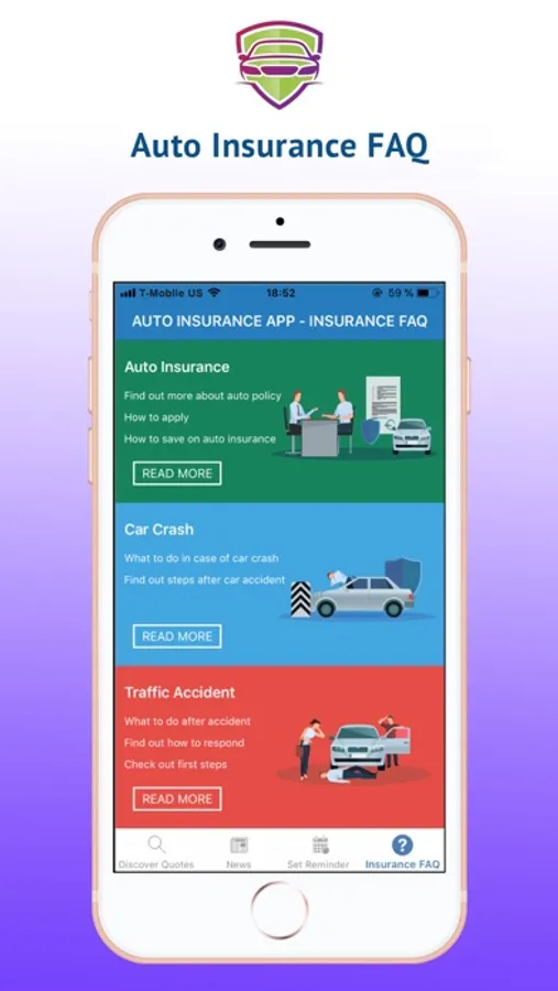 Use Auto Insurance App to have mobile guide to know what to do in case of accident. Use auto insurance FAQ to follow the right steps if something happen.