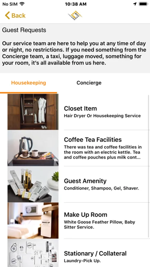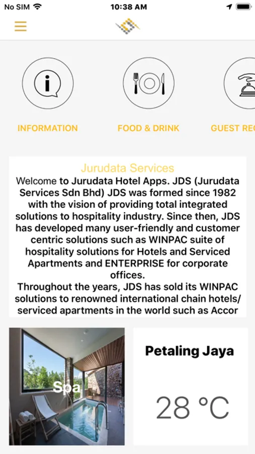 This app is intended for hotel guests to download the app to view on the hotel information, make request, view on facilities available, safety messages and to view operation manual.