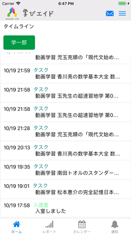 学びエイドマスターにて、ペアレンタルした生徒のタイムラインや塾からのお知らせ、メッセージをやり取りすることができます。