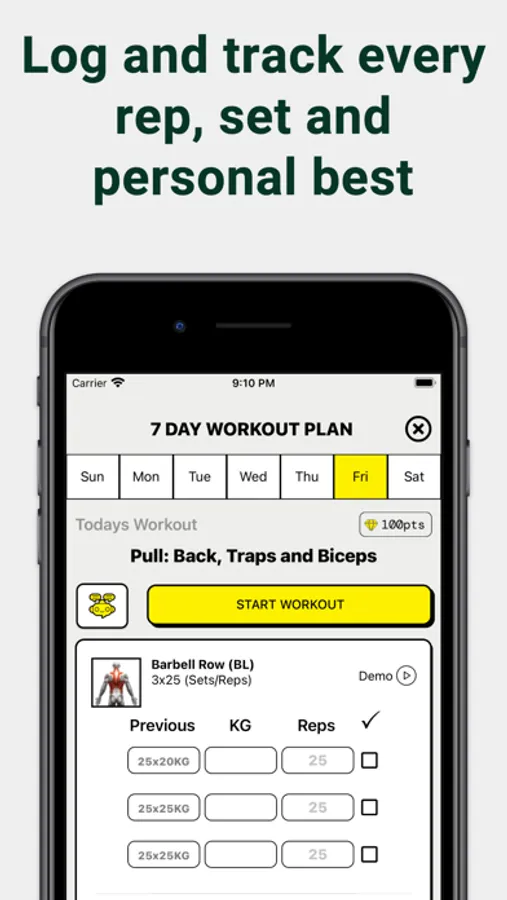 Interactive workouts to guide your every step. Easily track your reps, sets, and weights lifted daily.