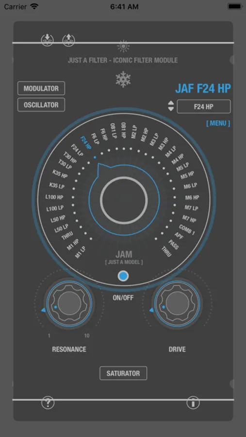 The JAF Collection is an exciting set of digital modeled classic analog synthesizer filters (VCFs) for iOS. The emphasis of this collection of audio effects is professional analog sounding and optimized behavior with touchscreen usage.