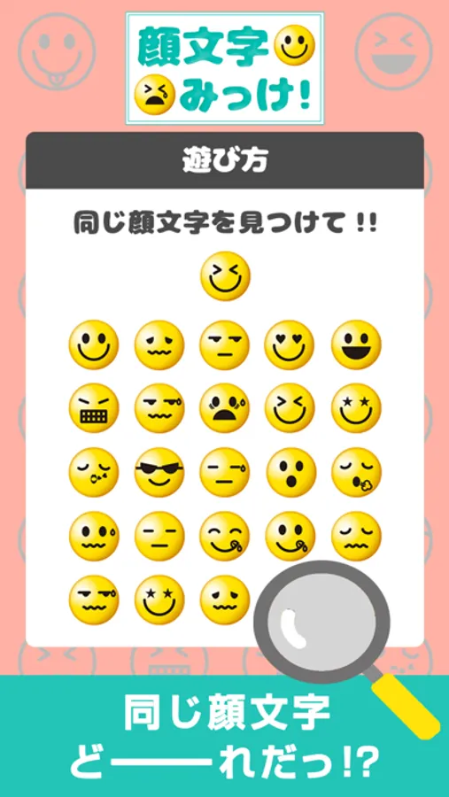 遊び方は、並んでる顔文字パズルの中から