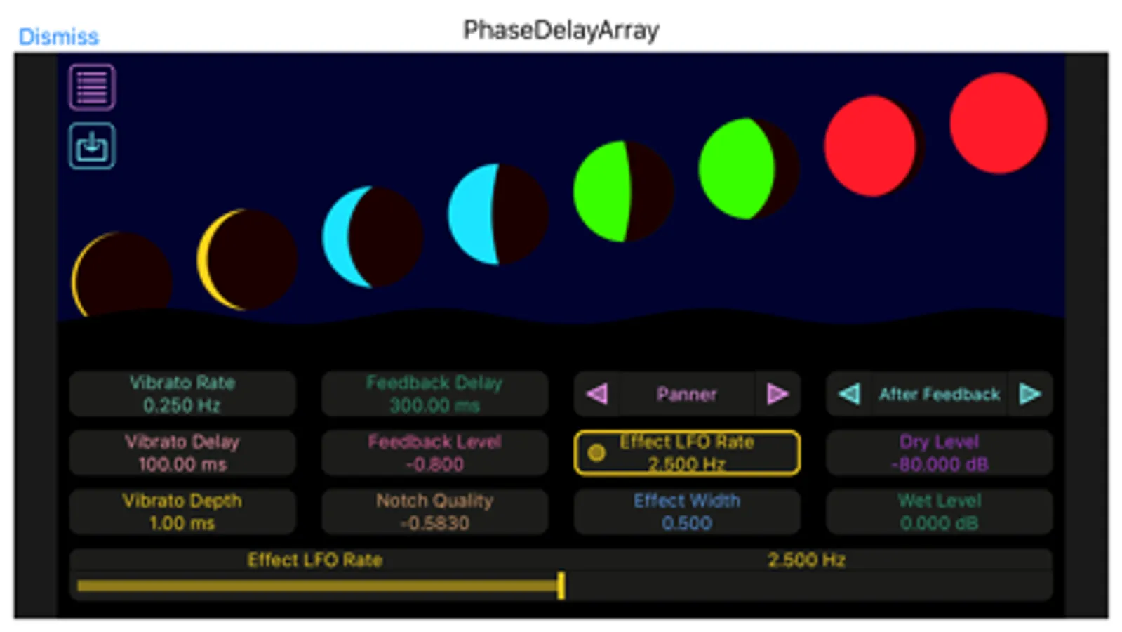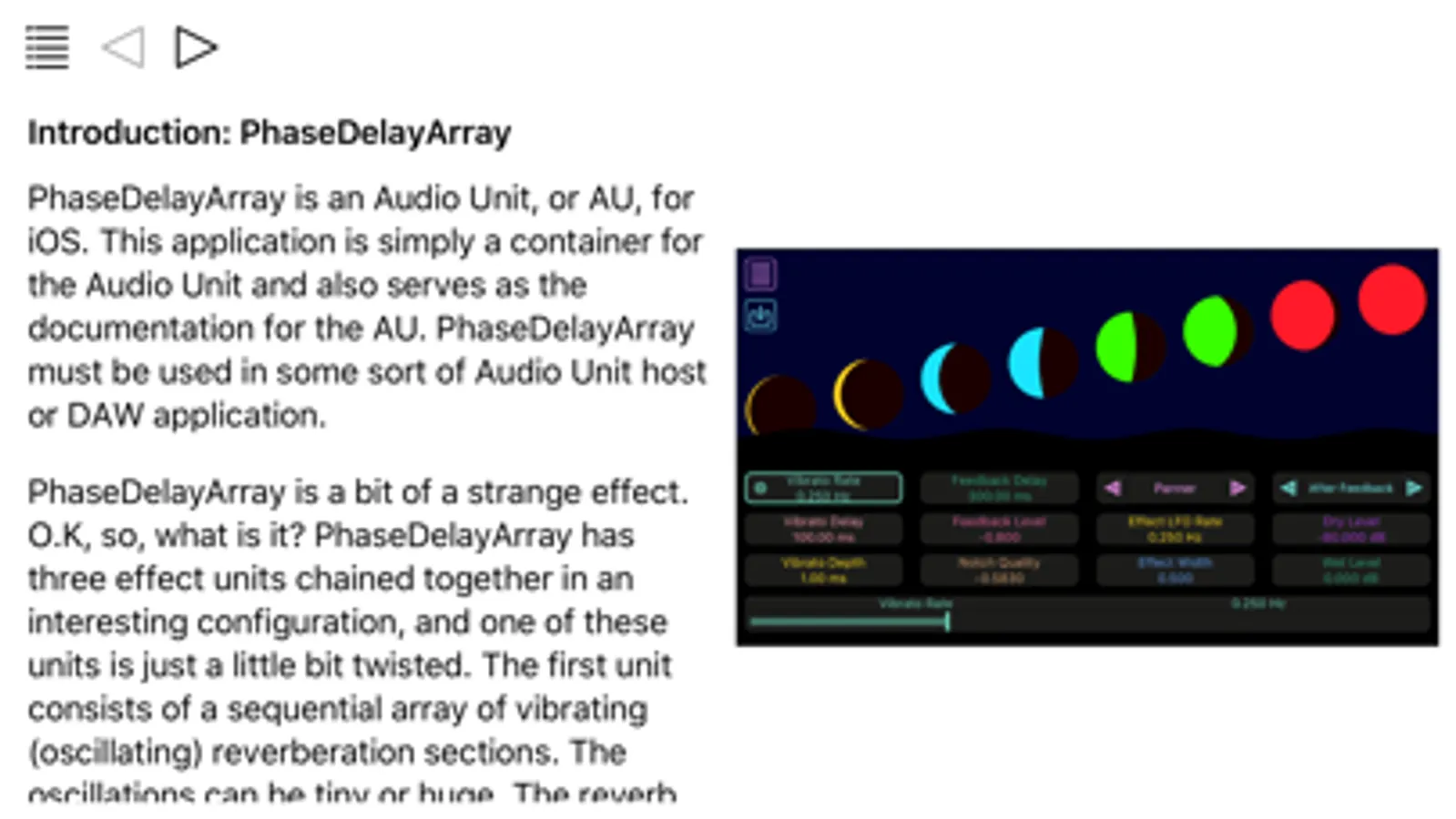 PhaseDelayArray is an Audio Unit, or AU, for iOS. This application is simply a container for the Audio Unit and also serves as the documentation for the AU. PhaseDelayArray must be used in some sort of Audio Unit host or DAW application.