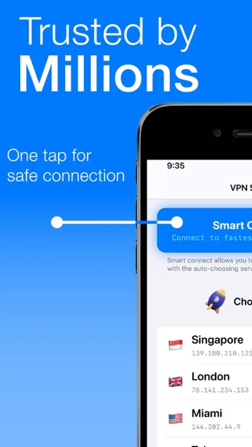 * Simplest, one tap connect to any VPN server