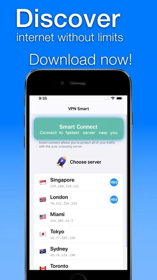 VPN Smart secures your device’s connection while you’re connected to public wifi hotspots, cellular data networks, and other public locations. Your password and your personal data are secured, and you are protected from hacker attacks.