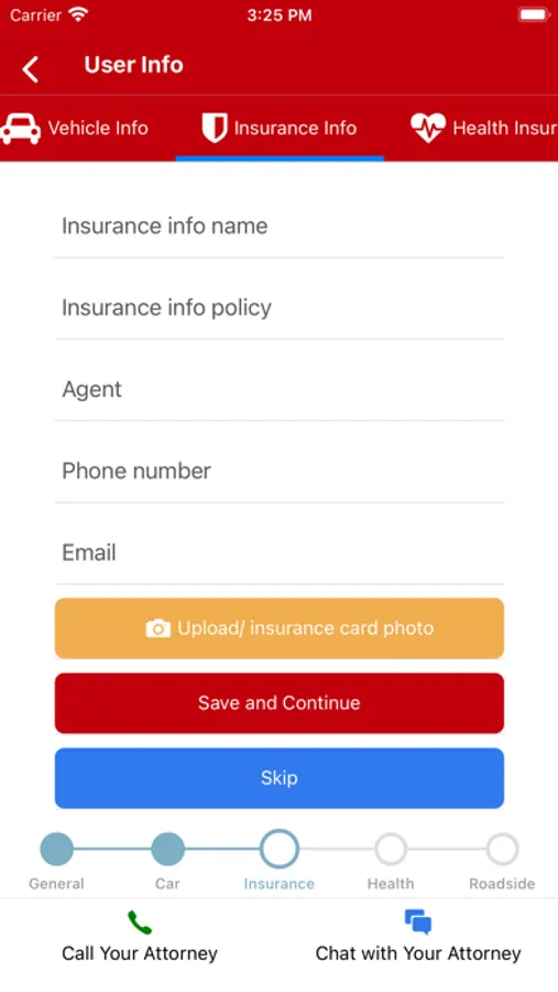 The core feature of our App is the ability to live chat with your attorney office to ask questions, get updates, and more. Our system allows you access into your favorite firm to store all drivers information for when you need it most. Store your drivers license, car insurance, roadside assistance, and more. Involved in an accident, have the ability to report ll new car accidents directly though our mobile app and instantly notify our legal team of what happened. Next chat with us for the next steps.