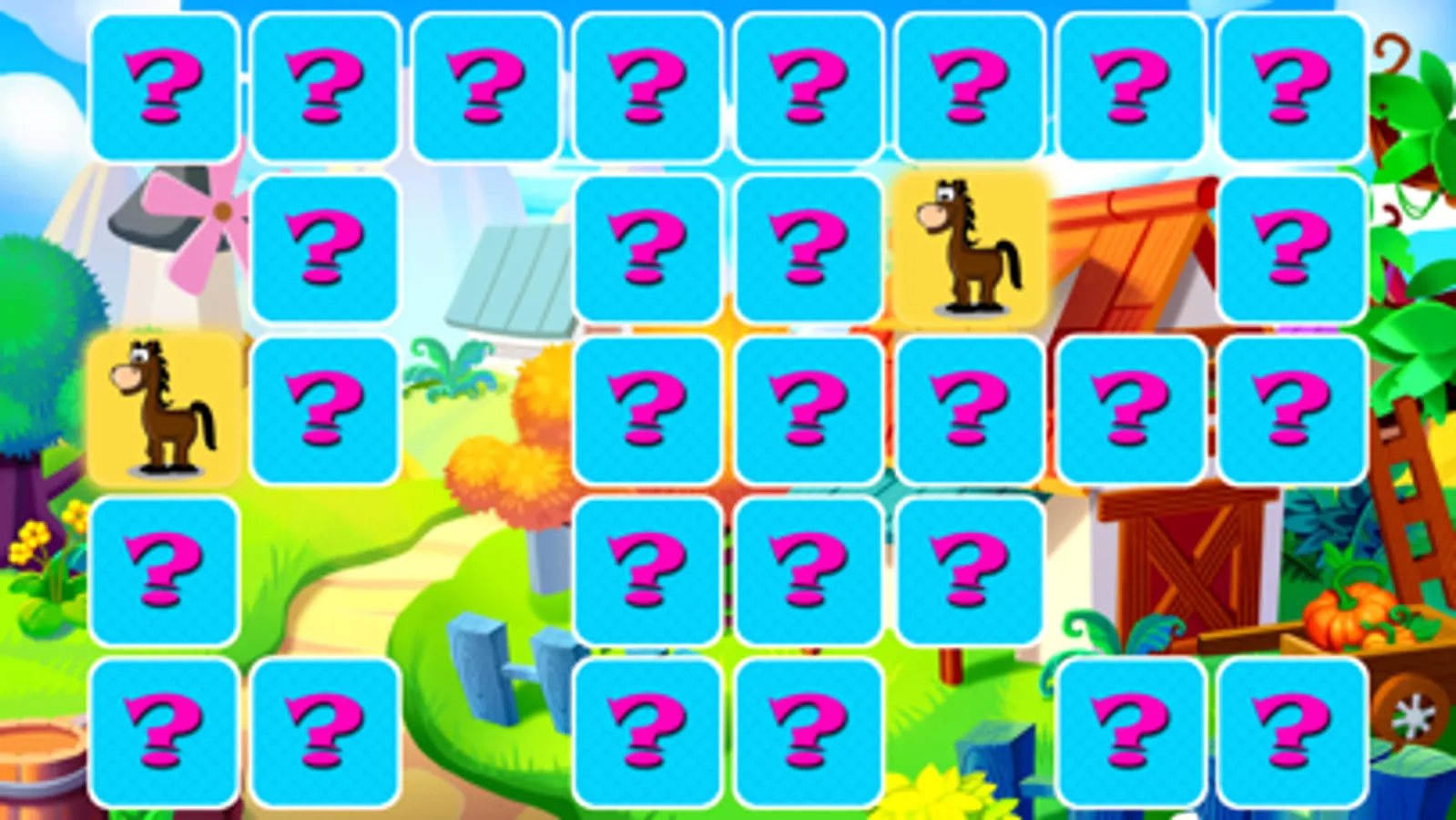 Goal of the Memory Match Kids Game is really simple, match two cards with the same picture to remove it from the board. Remove all the cards this way to finish the round.