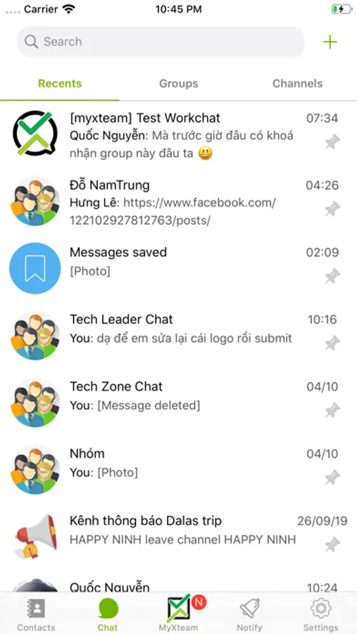 Đây là ứng dụng nhắn tin giành cho ứng dụng làm việc nhóm myXteam.