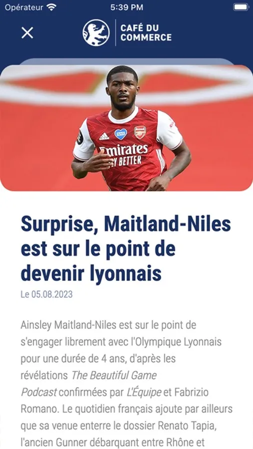 Le Café du Commerce est un média en ligne qui suit l'actualité de l'Olympique Lyonnais ! Dernières actualités et mercato, articles éditoriaux, matchs en direct avec notifications, joueurs du mois, homme du match, agenda, classement...