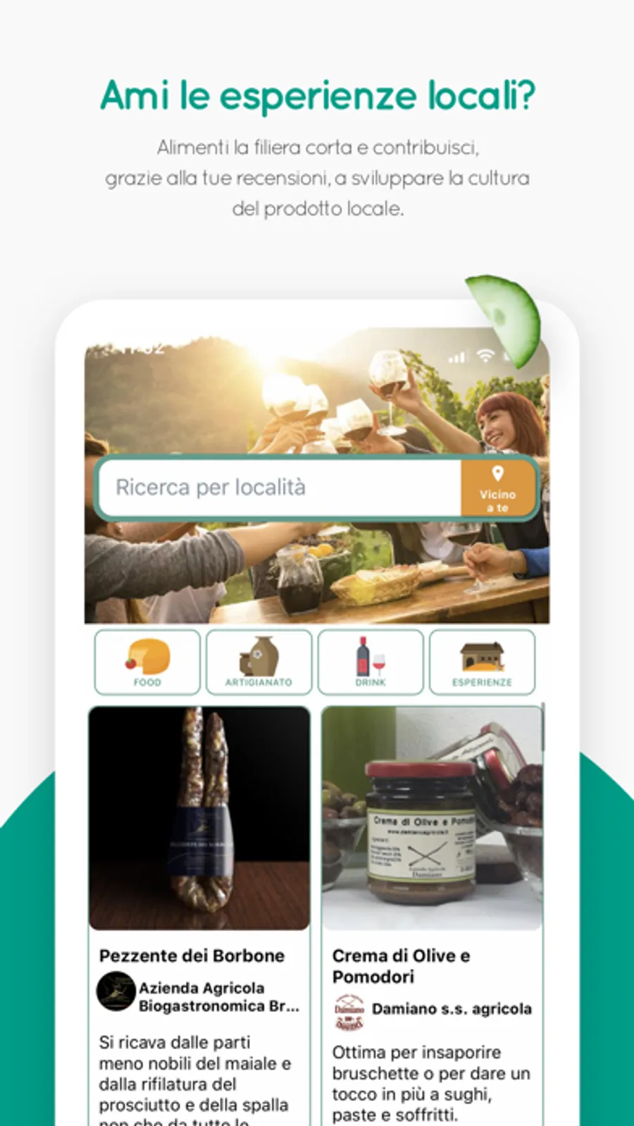 Se anche tu sei un Appassionato come noi e hai a cuore la valorizzazione e scoperta delle realtà locali, scaricando l'App avrai l'opportunità di entrare a far parte della più grande Community con al centro il prodotto locale, uno spazio dedicato agli amanti della buona cucina e dei prodotti eccezionali del nostro territorio.