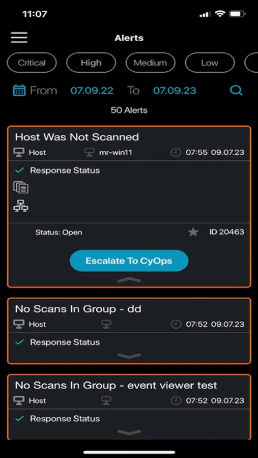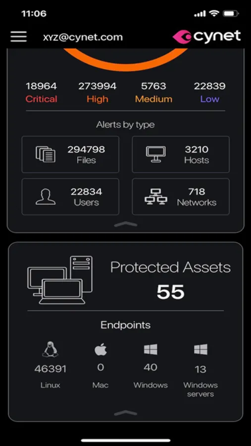 The Cynet Dashboard app is built to provide the CISO or CIO with the ability to gain immediate insights into the security posture of his environment at a single glance – anytime, anywhere.