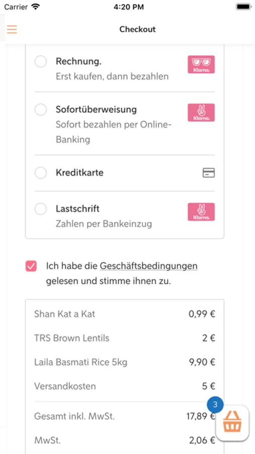 Sie Zahlen erst wenn Sie die Lebensmittel erhalten haben mit "Klarna Pay Later"