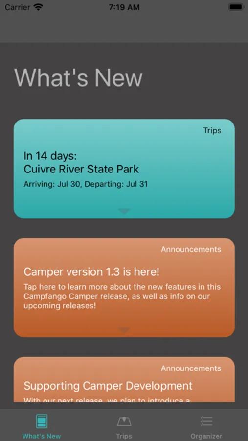 A simpler life doesn’t mean a disconnected life. It’s time to build technology for modern RVers. Technology that combines the connectedness, ease of organization and freedom that our modern devices provide with the simplicity and relaxation that RV living promises. Camper has an aggressive schedule of planned improvements but we are looking for early adopters to join us in the process. We’re taking a community development approach – soliciting feedback and prioritizing the improvements using a rapid development environment.