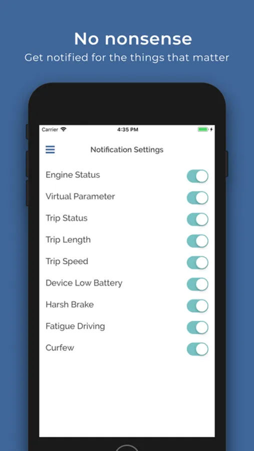 Don’t want your teenager driving over a certain duration? Set a driving duration alarm and receive a notification when the vehicle is active for too long.