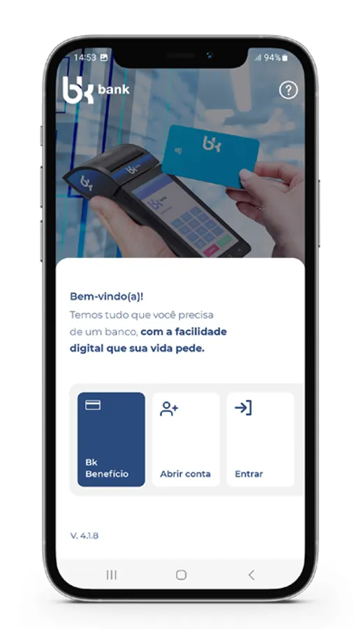 Baixe o app BK e faça pagamentos de contas, transferência, consulte extrato e depósito.