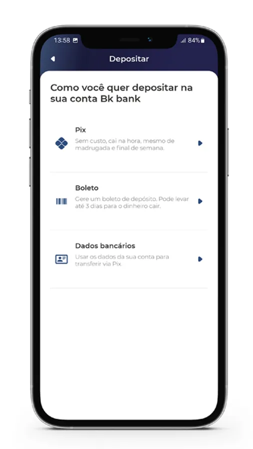 Com o app da conta digital BK ficou mais simples realizar diversas transações bancárias, como: transferência, ver extrato, fazer depósito, gerar boleto e muito mais.