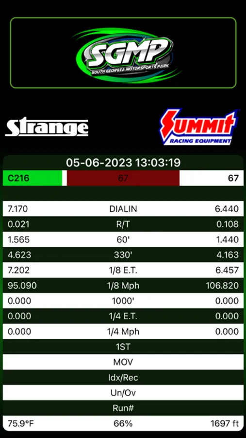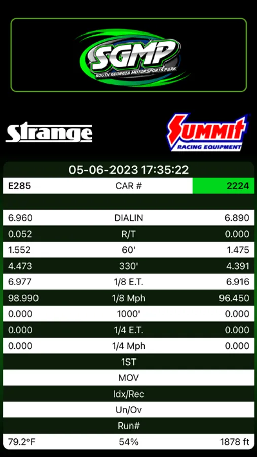 Drag racing Time slips from the South Georgia Motorsports Park race track are currently printed using a receipt printer at the race track. This app shows the same time slips information on your phone.