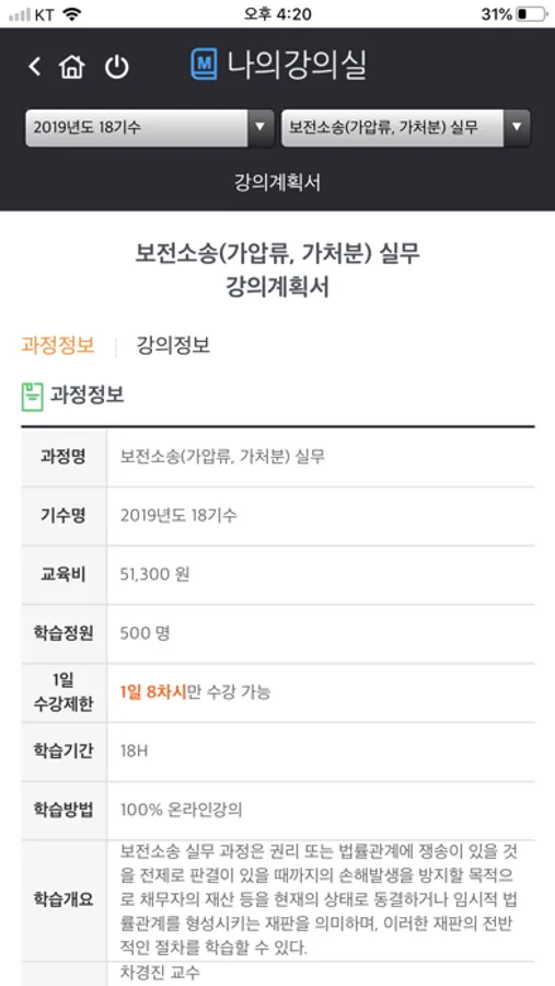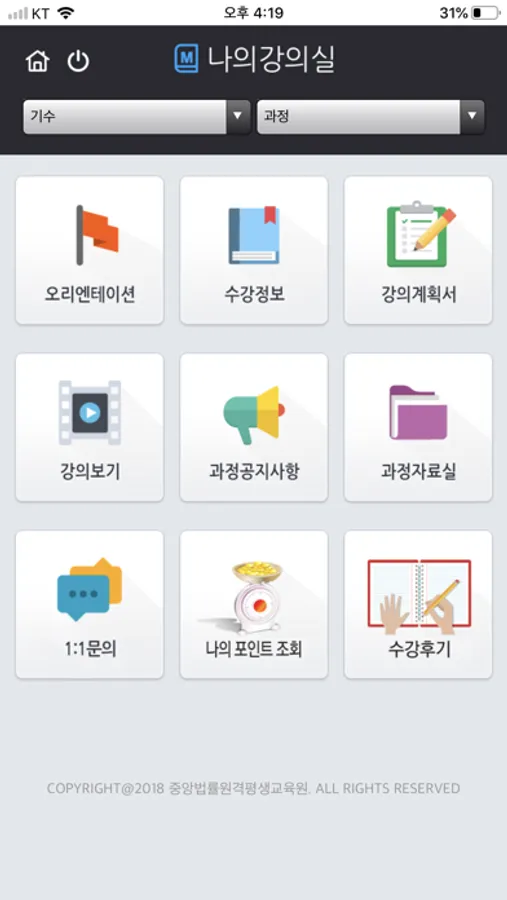 법률교육의 메카 중앙법률사무교육원에서 수강생들의 보다 더 편리한 합습을 위해 어플을 출시하였습니다.