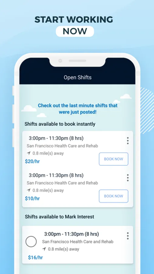 Book Your Preferred Shifts: We offer AM, PM, NOC, and custom shift schedules, so you can book the shifts you want.