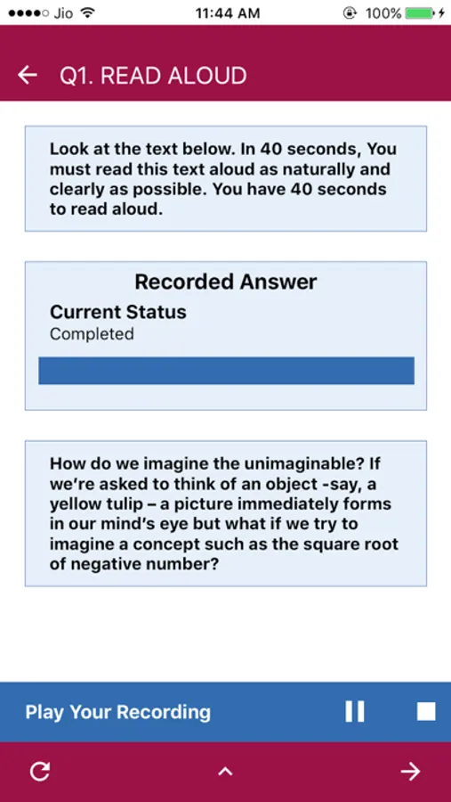 This is a long-answer item type that integrates speaking and reading skills, and requires test takers to read a short text aloud, using correct pronunciation and intonation.