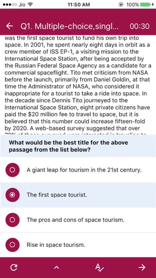 Read the text and answer the multiple-choice question by selecting the correct response.This item type that assesses reading skills. It requires test takers to read, analyze, understand and assess a short text on an academic subject and choose a single correct response.
