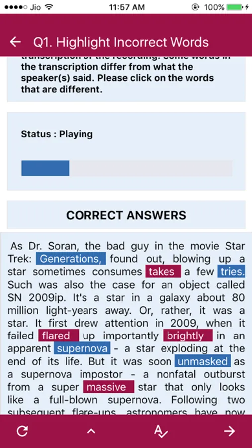 You will hear a recording. Some words in the transcription differ form what the speaker(s) said. Find out incorrect words.