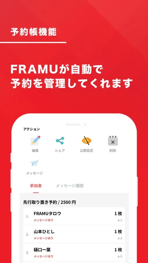 → FRAMUなら、取り置き予約の管理、受付完了メールの送信など、全て自動で行えます。