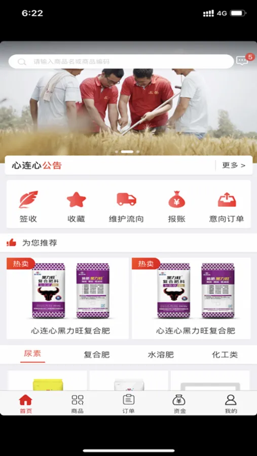 心商城用于在手机端随时了解心连心经销商商在企业的信息(预付款、费用、信用、企业信息等情况),心连心经销商可使用以商城形式进行下单操作,后续可追踪订单进度。
