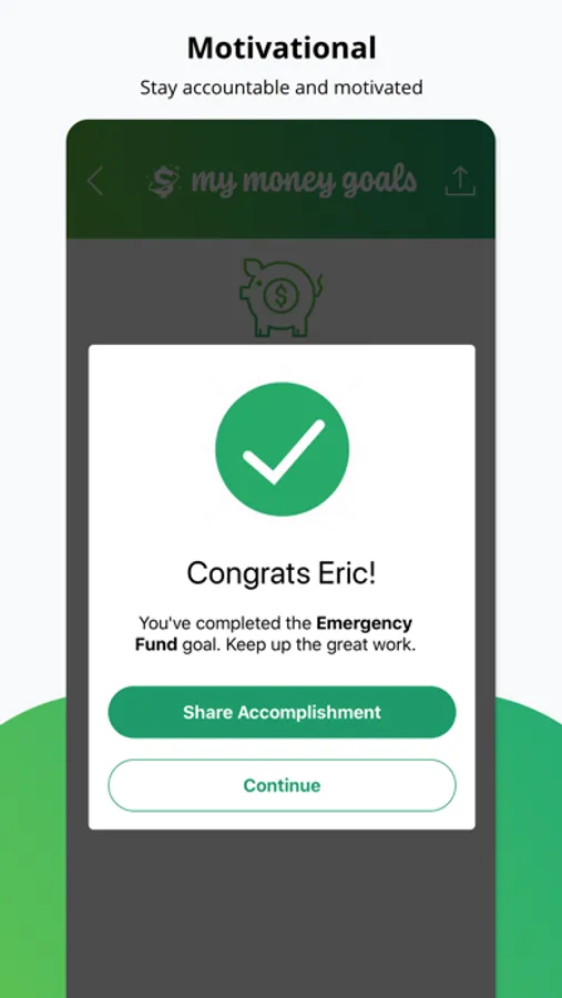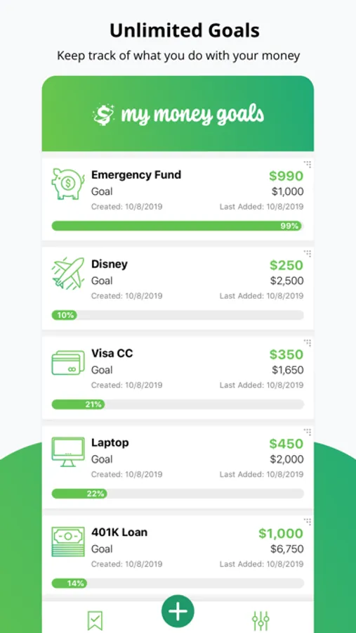 Whether you are trying to save money, pay off debt, plan a vacation or make a long awaited purchase, our app is here to help. Stay accountable and motivated by tracking all your financial goals with our simple and user-friendly interface.