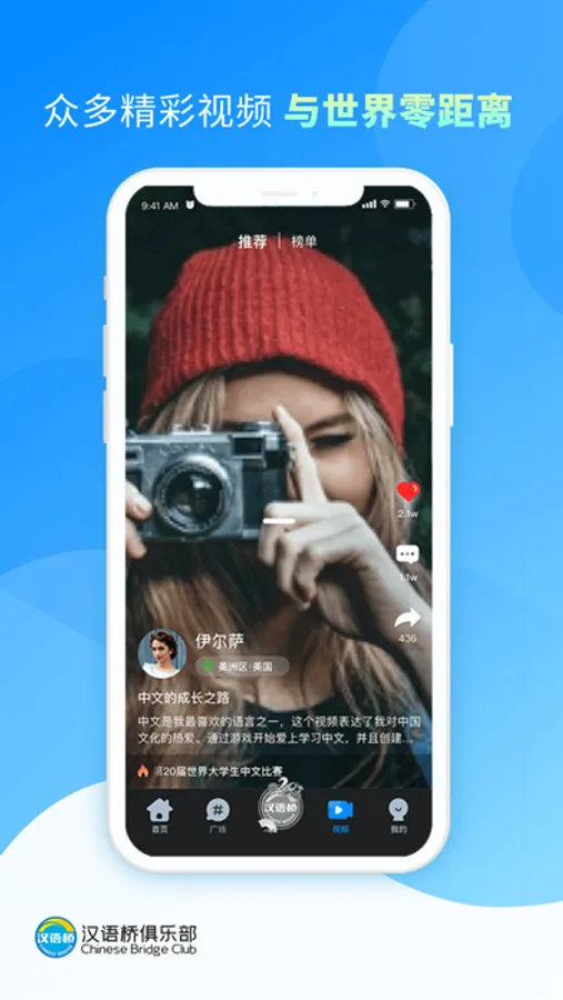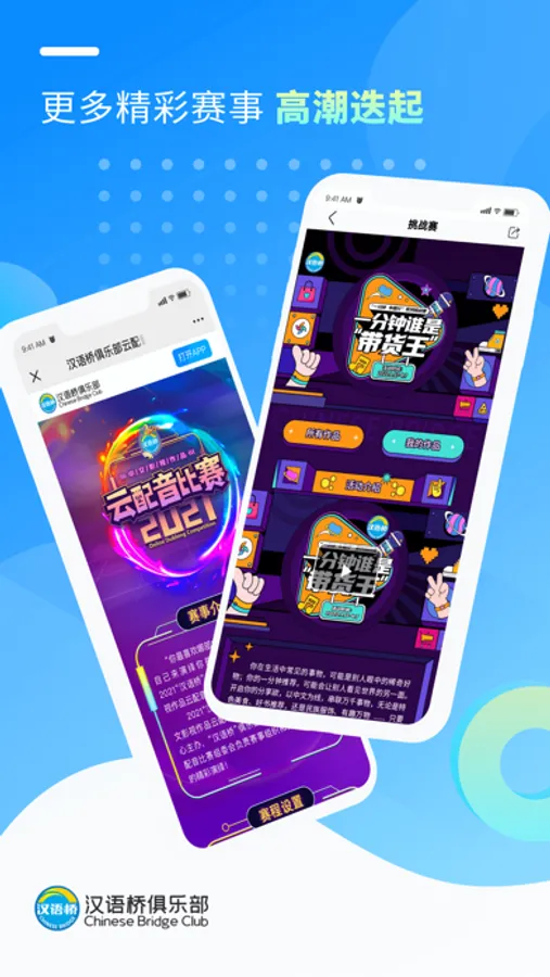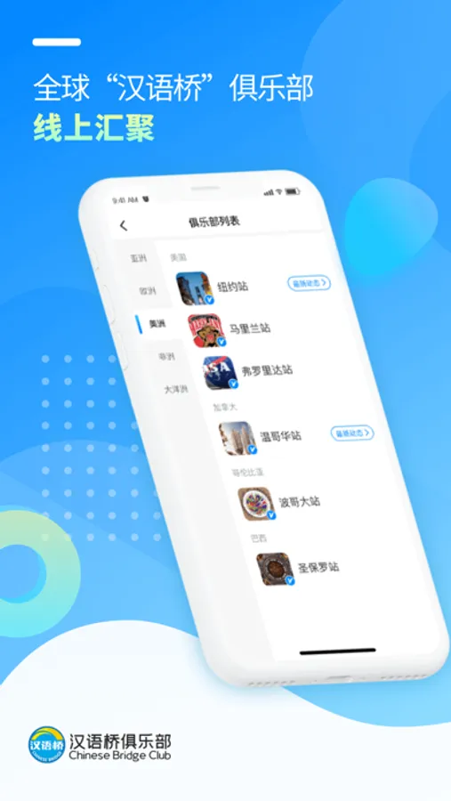 Chinese bridge APP offers inquiry, sharing, participation, interaction and cooperation for foreign friends who love Chinese language and Chinese culture all over the world. Here, you can follow the events, release the information of the contest, search the cultural tourism information, attend the club activities, and get the opportunity to work as an intern in China.