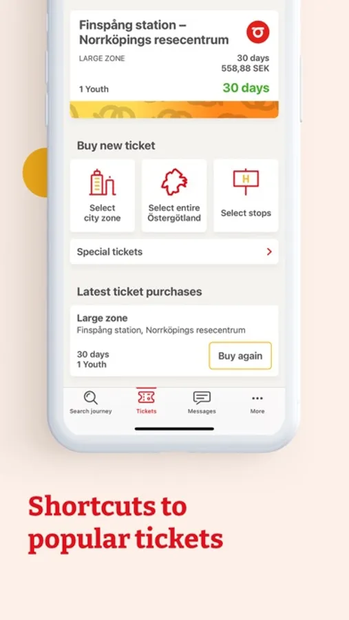 In Östgötatrafiken’s new app you can buy tickets and search for trips quickly and easily. In addition to a single ticket and 24-hour pass, you are now also able to purchase 30-day and 365-day passes. You will also get access to discounts and our new zones.