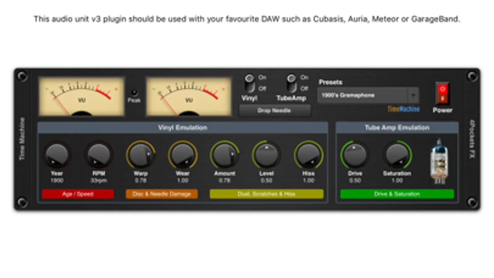 Time Machine is a plugin that allows you to go back to the days of vinyl and tube amplification.