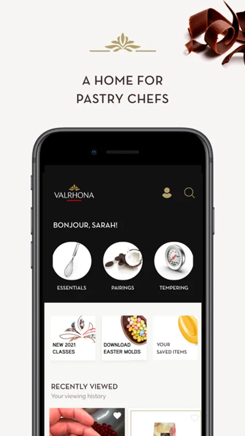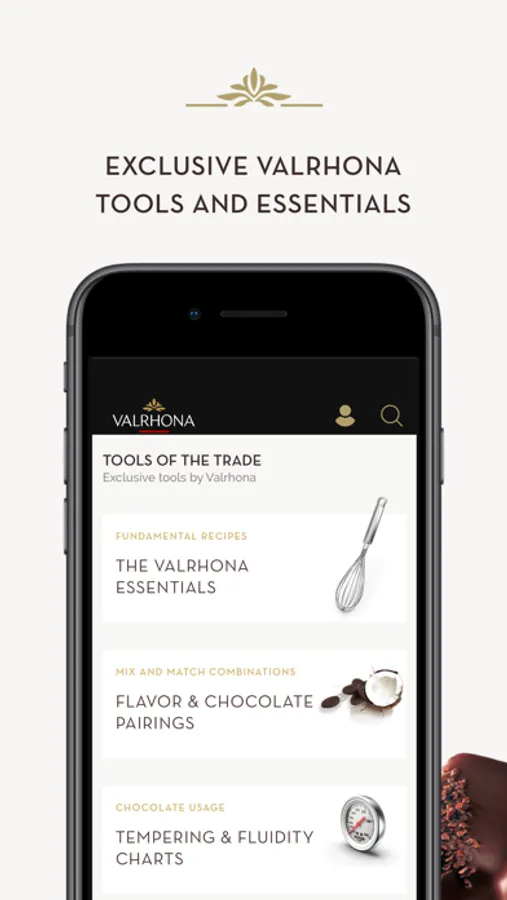The Valrhona App is a revolutionary platform for pastry professionals, built with the technical expertise of leading pastry chefs. It provides built-in, adaptable tools for recipe development such as the Valrhona Essentials recipes, chocolate pairings, conversion tools, and more, all of which facilitate and inspire the creation process at the touch of a button.