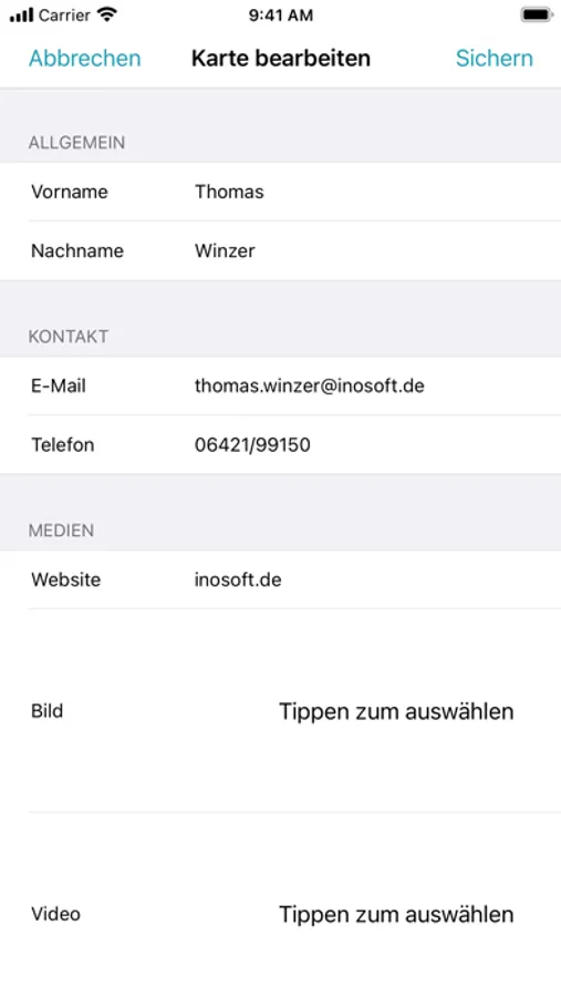 Mit der App AR Card können Sie Visitenkarten mit Informationen ergänzen, die beim Blick durch die Kamera in das Sichtfeld eingeblendet bzw. augmentiert werden.