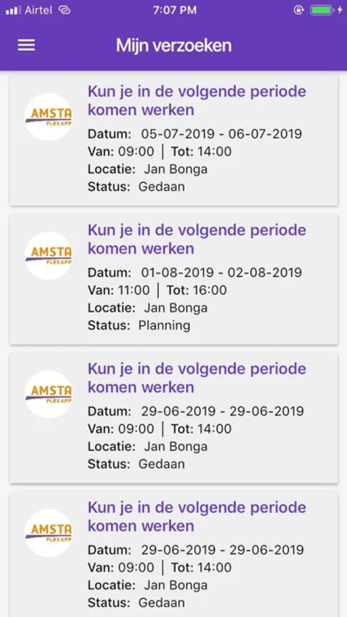 De Amsta flexapp communiceert op simpele en snelle wijze werkverzoeken tussen planner/manager en poolers/vrijwilligers binnen en buiten Amsta wie zich via de flexapp hebben aangemeld.