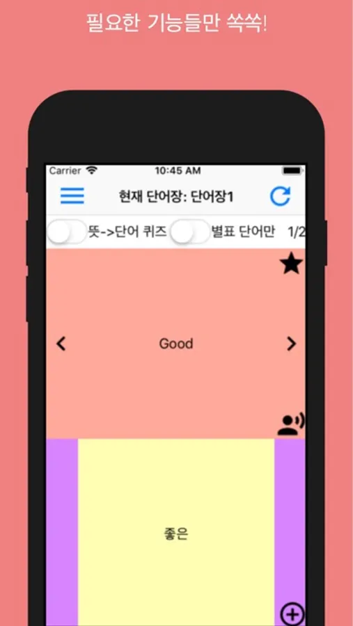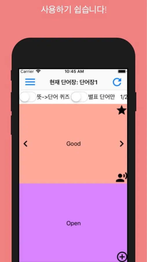 뜻과 단어를 번갈아가며 암기할 수 있습니다.