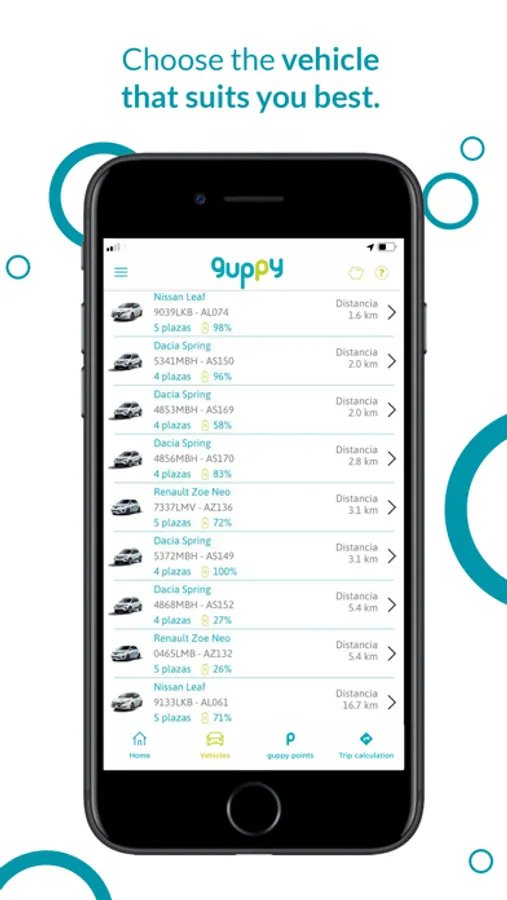 Easy peasy! Enter the app and choose the vehicle that you like the most, you will be able to check its location, model and battery charge level.