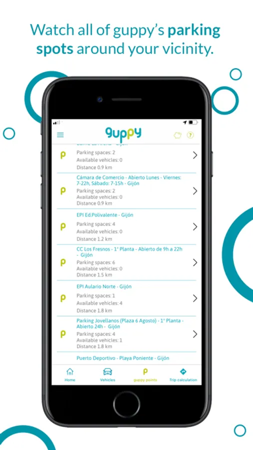For you to move quickly and safely through Cantabria, our guppy service has exclusive places at strategic points, better known as guppy Points, where you can finish the rental at no cost. You will easily recognize them by their green color. In addition, soon, it will also be available at Santander Airport.