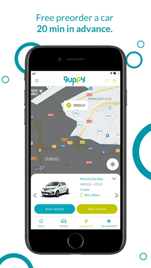 • Save time looking for parking, since you can end the rental within the guppy zone or at a guppy point.