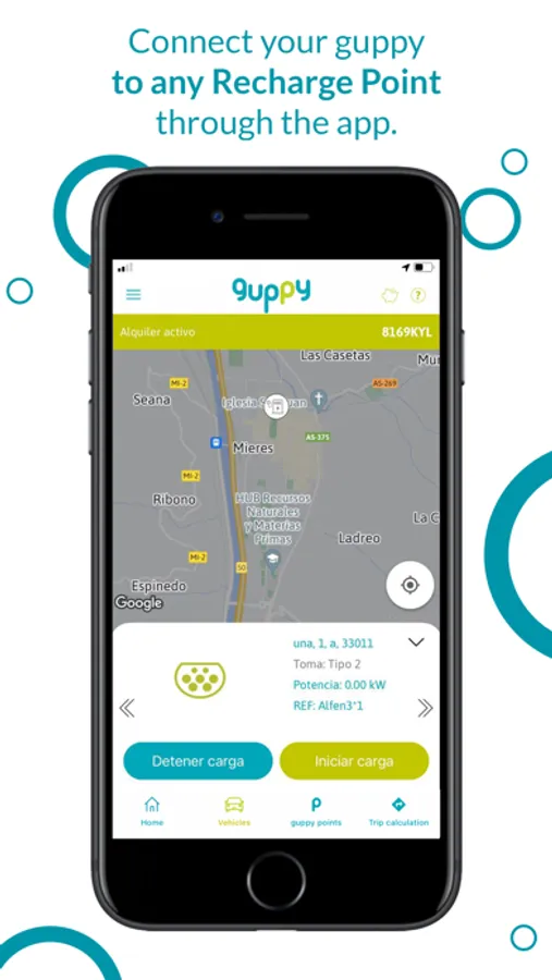 In addition, to facilitate long-distance travel, with the guppy app you have direct management of recharging in public PDRs. You can charge your vehicle throughout Spain without having to download other apps.