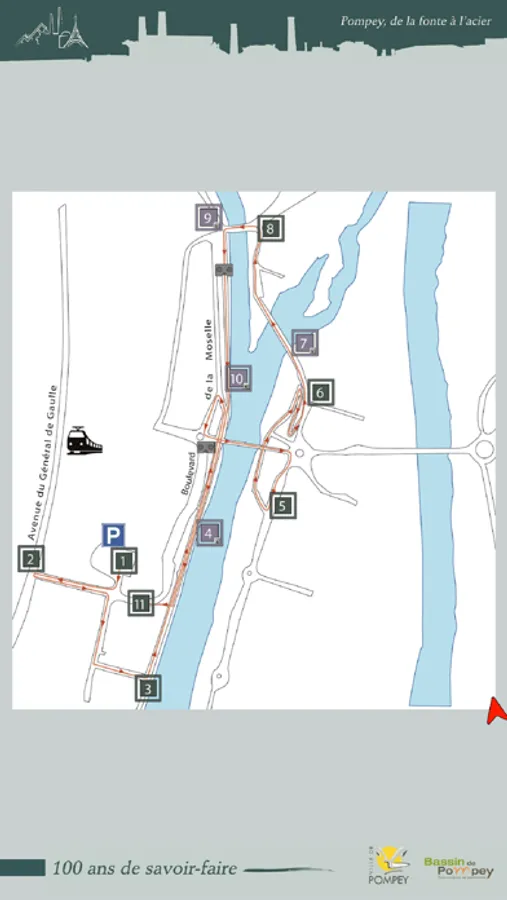Situé sur l'ancien emplacement de l'usine de Pompey, ce nouveau parcours historique interactif fait découvrir aux visiteurs le monde de fer et de feu des aciéries. À travers cette promenade le long des berges de la Moselle, les curieux pourront découvrir l'usine sidérurgique qui a fermé ses portes en 1986 et qui a donné naissance au monument le plus célèbre du monde : la Tour Eiffel.