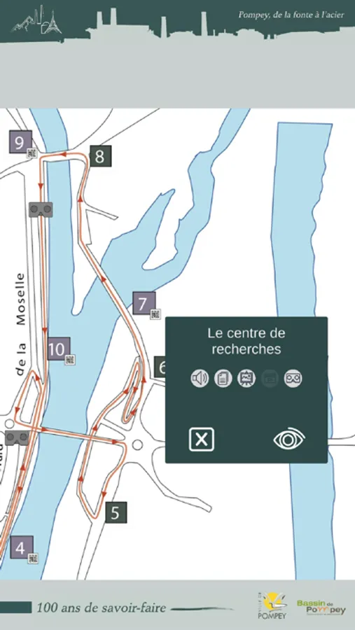 Du haut fourneau au laminoir, en passant par le laboratoire, le public parcourt cette terre riche d'histoire et découvre comment les aciéries de Pompey ont profondément modifié la ville. Pour une visite encore plus immersive, les visiteurs pourront télécharger une application pour vivre l'expérience en réalité augmentée ou scanner les QR Code de l'application sur smartphone et découvrir des témoignages audio.