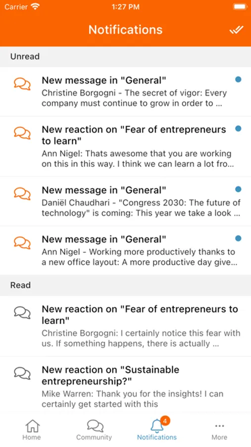 Stay in contact with your colleagues, fellow members or other participants via your telephone. Ask questions, respond to messages, share knowledge or start the discussion within your community! Receive push notifications from new messages and responses and get access to different channels.