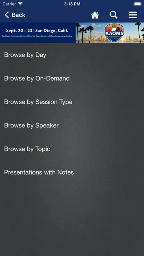 Users can take notes adjacent available presentation slides and draw directly on slides inside the app. Note-taking is also available in the posters and exhibitors modules.
