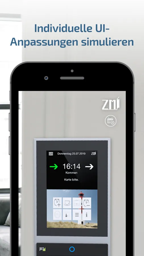 ZMI – AR unterstützt Sie bei der Auswahl des passenden Digitalen Zeiterfassungsterminals für Ihre Organisation und der optimalen Platzierung in Ihrer Umgebung. Erleben Sie auf Ihrem Tablet die Buchungsfunktionen der unterschiedlichen Terminals. Ergänzen Sie die Terminals mit individuellen Passepartouts (geräteabhängig). Fordern Sie hierfür einfach unseren Augmented Reality Marker per Mail (vertrieb@ZMI.de) an.