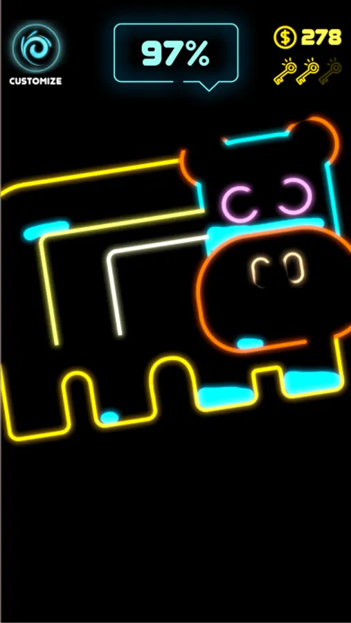 Guide glowing fluid into the dark, to find a hidden neon beauty!